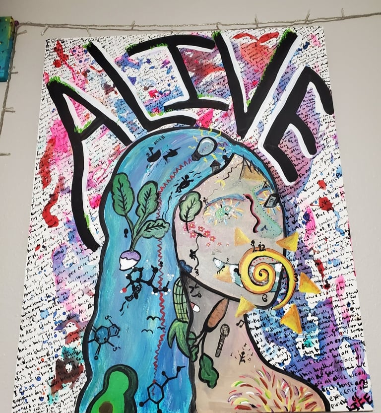 Hello! My name is Shelby. I began my art explorations a handful of years ago while living in Idaho. I can't help but continue to love what I find and the joy I get from creating a variety of things. Some of the pieces I make include: painted furniture, painted instruments, canvas paintings, dyed and painted clothing, natural perfumes, murals, auto paint jobs, custom songs, and photography. One of my goals in this is to create art that reminds one of the the fullness and beauty in the ordinary and mundane. Perhaps a ordinary day isn't really so ordinary...